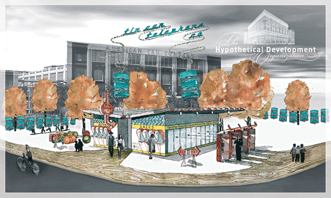 secrets to anxiously waiting peers via oversized tin-can telephones.